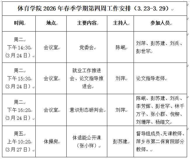永利3044集团2026年春季学期第四周工作安排(3.23—3.29)-永利3044集团