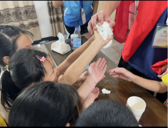 为全面提升孩子们的科学素养,激发他们主动探索世界、了解世界的能力,志愿者们利用生活中常见的道具,如矿泉水瓶、纸巾等随处可见的物品,带领孩子们一起完成“扎不破的手套、塑料礼花、泡泡瀑布”等实验,并在实验过后解释其中的科学原理,让枯燥的学习变得生动有趣,有效激发孩子的好奇心、探索欲。