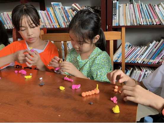 为充分发挥孩子们的想象力,锻炼孩子们的动手能力,志愿者们使用无毒无危害的彩色黏土作为孩子们发挥想象力的载体,孩子们专注投入制作打磨自己的作品,时不时有孩子兴奋的拿着小动物、植物等各式各样的成品给志愿者们展示,脸上洋溢着开心满足的笑容。