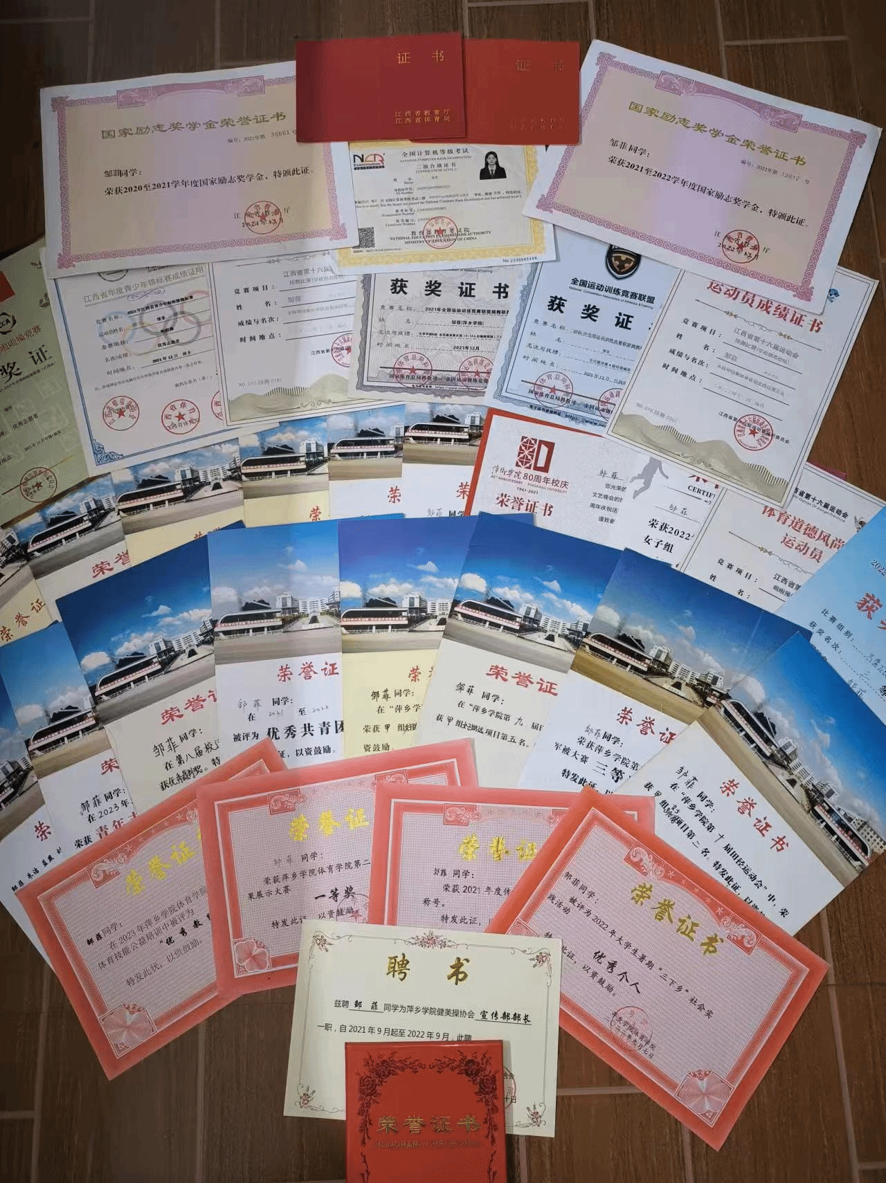 习近平主席说过:青年正处于人生积累阶段,需要像海绵汲水一样汲取知识。从进入大学起,邹菲一直把学习放在首位,清晰的意识到大学生学习的自主性。作为体育教育专业的学生,不仅仅在理论知识学习上要扎实,更要注重实践能力的提升。在大一至大三学年,她在保持专业成绩第一的同时,更是取得全国计算机等级考试二级合格证书、高级中学体育与健康教师资格证书、篮球一级裁判员证书、三级社会体育指导员等技能证书。