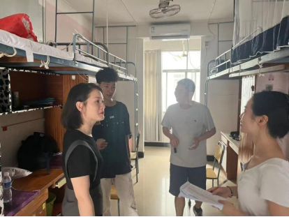 在寝室里,刘书记耐心询问询问家长和学生们的到校感受,同时鼓励同学们尽快适应大学的学习生活节奏,树立明确的学习目标,合理规划时间,培养良好的生活习惯。