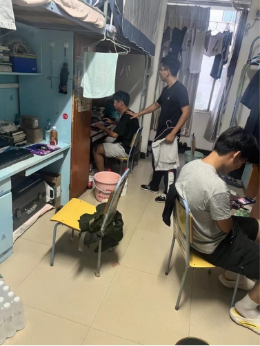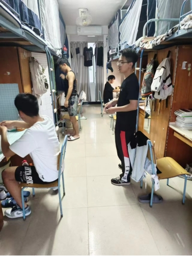 在寝室,洪老师与同学们亲切交谈,询问大家的学习、生活情况,提醒学生筑牢防诈骗和安全第一的意识,解决了学生关于学业导师,训练队等方面的困惑。