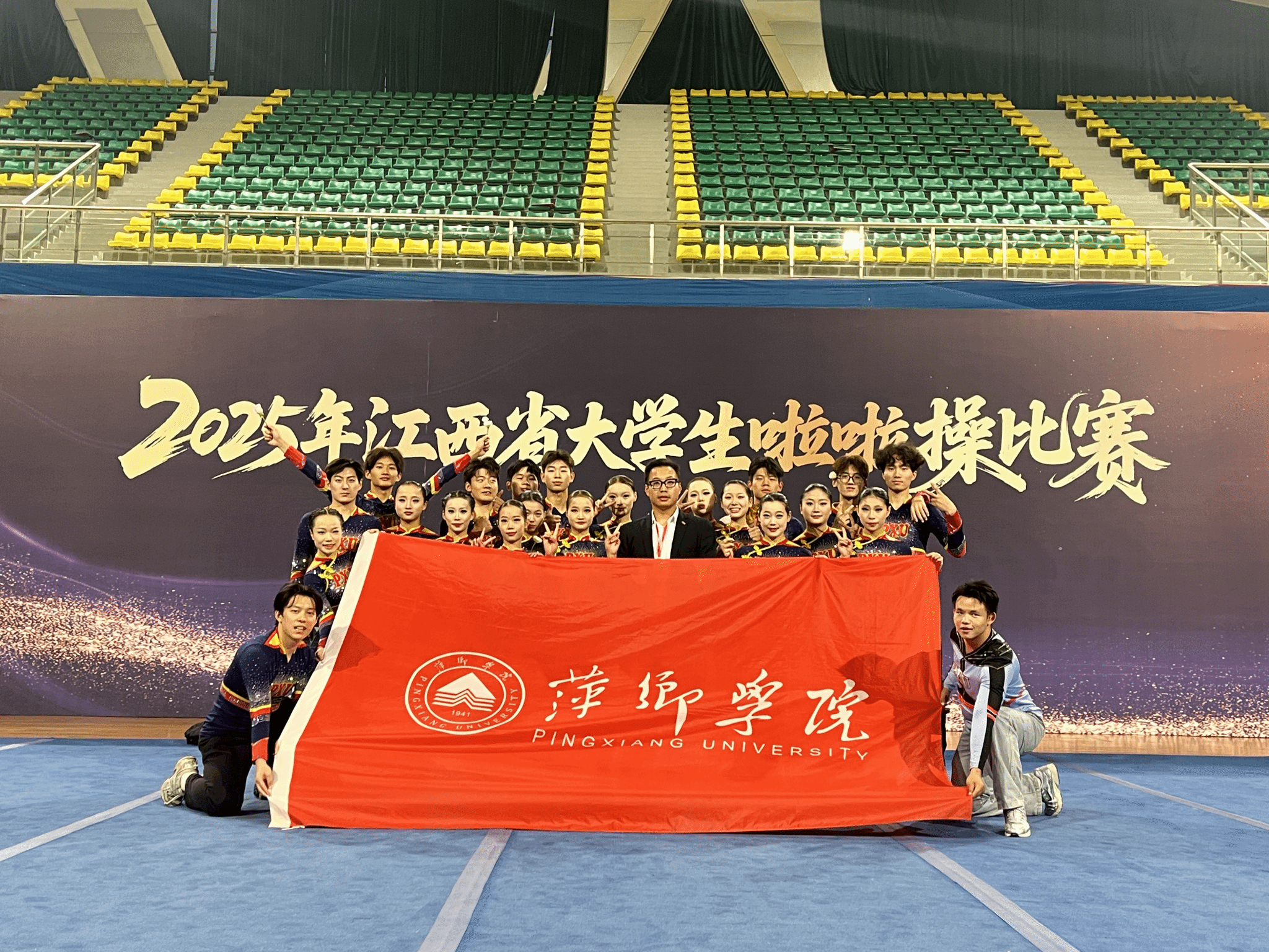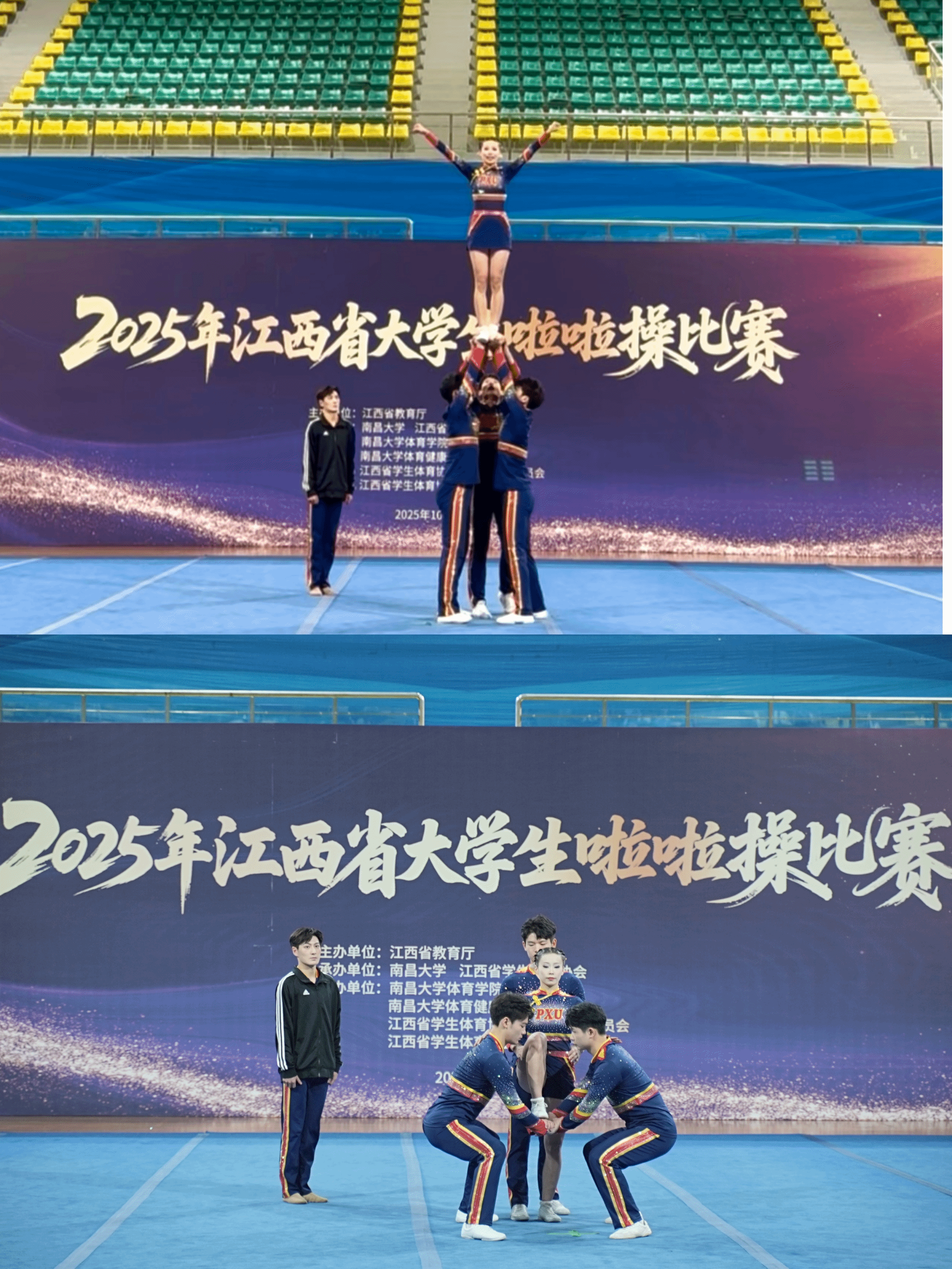 近日,2025年江西省大学生啦啦操比赛落下帷幕,永利3044集团啦啦操队凭借扎实功底、默契配合与全面实力,在本科乙组多个项目中强势突围、斩获佳绩,不仅包揽多项单项荣誉,更一举拿下本科乙组团体总分第二名,为校争光。