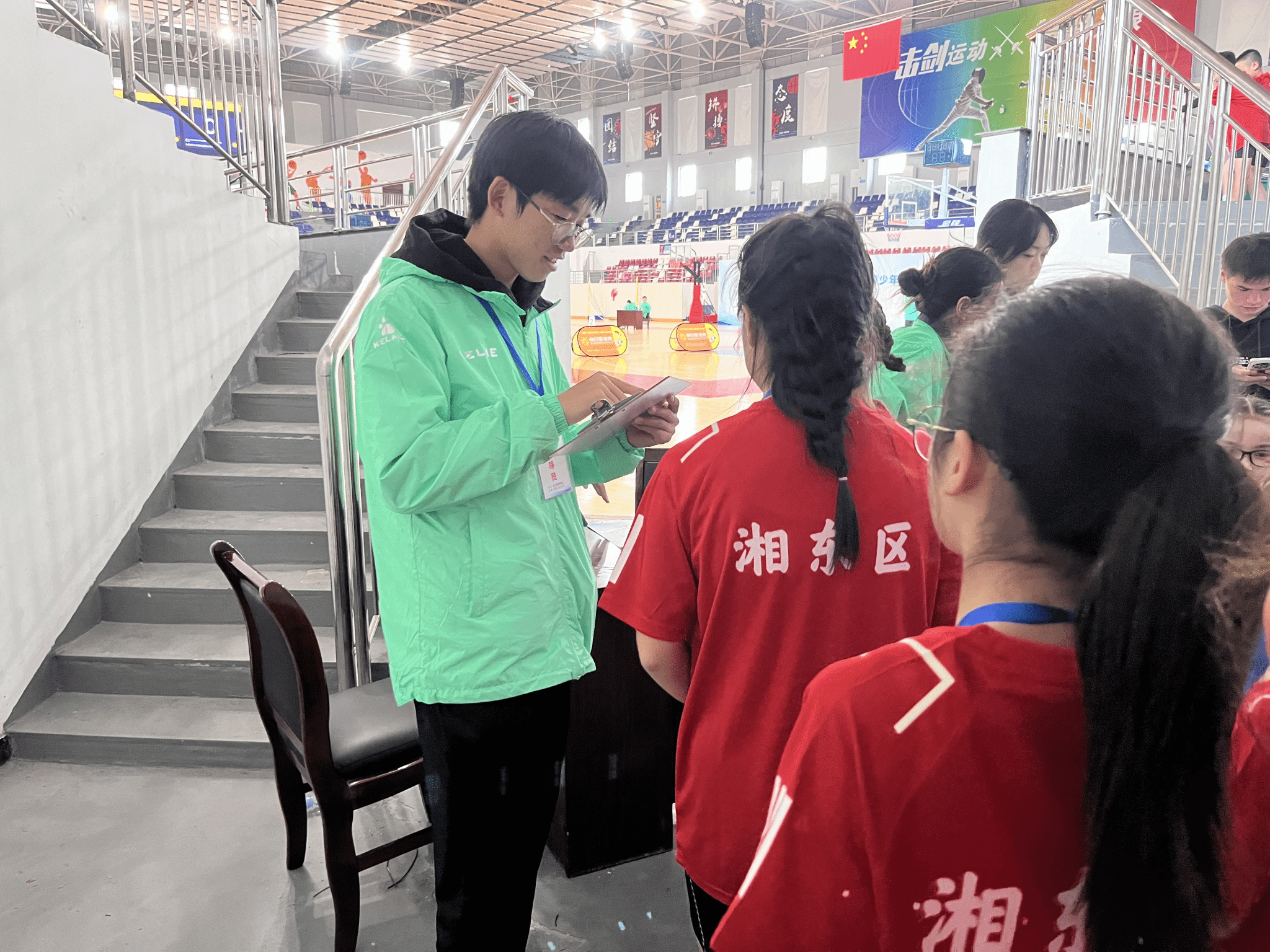 引导员们身着志愿服装穿梭于场各处,化身贴心“移动路标”。面对选手及家长的咨询,他们耐心解答参赛流程、场地分布等疑问;指引路线时清晰明确,用温暖笑容缓解选手赛前紧张情绪,成为连接赛场各区域的暖心纽带,保障参赛人员有序流动。