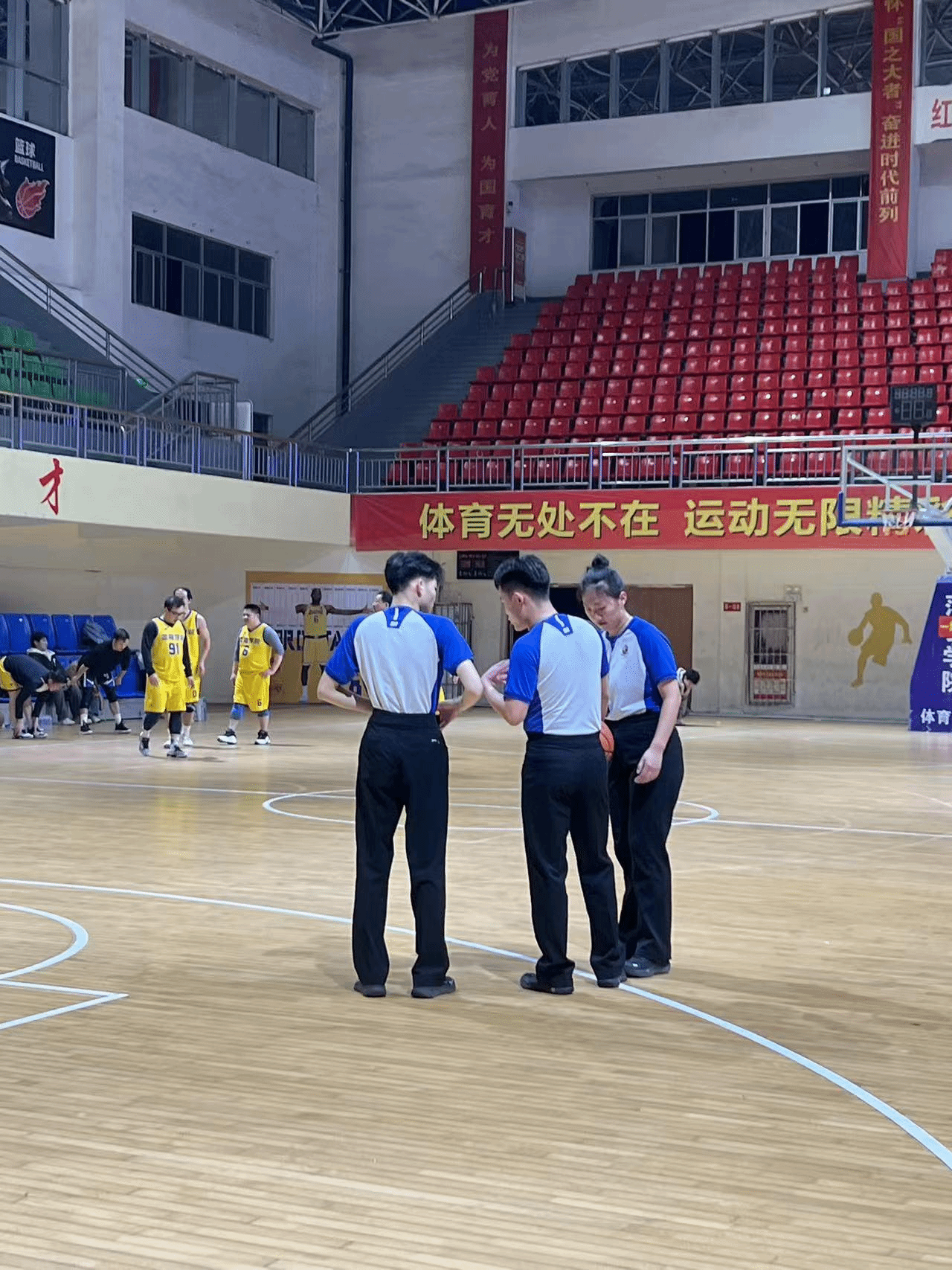 赛场上,裁判们始终恪守公平、公正、公开的核心原则,目光如炬紧盯每一次攻防转换。从边线界外球的精准判定,到篮下对抗的犯规吹罚,每一个决策都严谨规范,全力守护赛场秩序。他们的身影穿梭在球场各处,从开场第一声哨响到终场最后一秒,始终与挥洒汗水的球员们并肩,成为赛场不可或缺的重要力量。