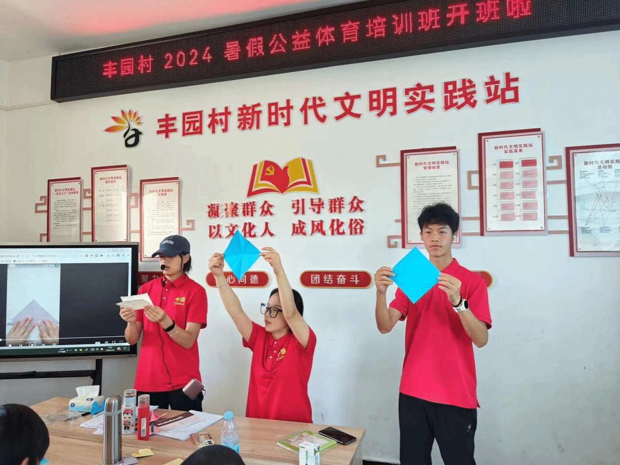 走出校园,游盈盈将专业技能化作温暖的育人力量。她主动参与暑期公益体育培训班,耐心给孩子们讲解啦啦操基础动作、体育安全知识,用鼓励的话语帮孩子们建立自信。看着孩子们在阳光下奔跑跳跃,她更加坚定了“让体育赋能成长”的信念,用爱心为乡村孩子的童年注入活力
