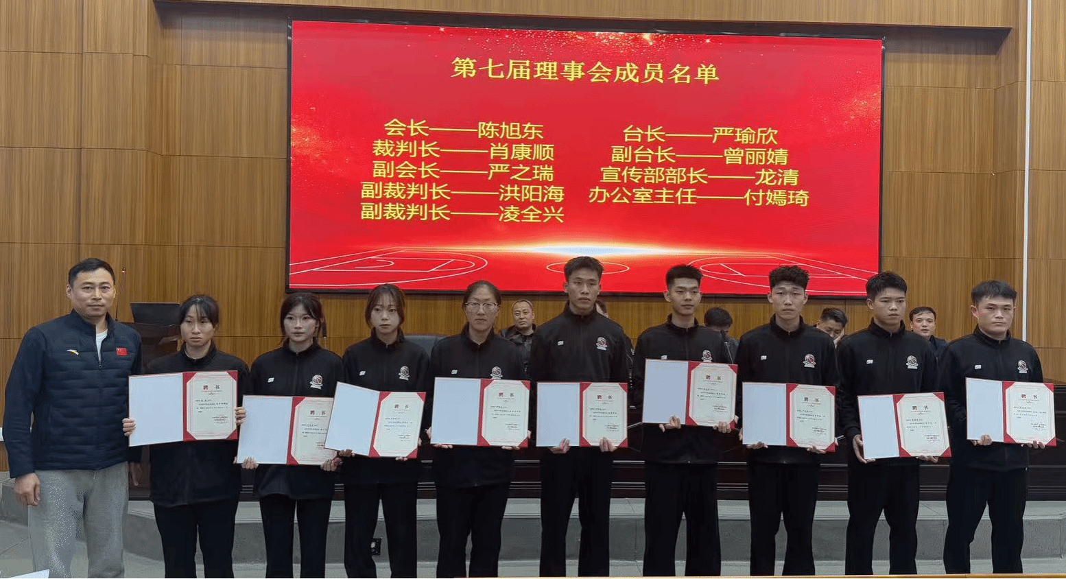 新一届理事会会长陈旭东、裁判长肖康顺和记录台台长严瑜欣分别作表态发言。他们承诺将以饱满热情、务实作风、创新思维,带领篮协完善制度建设、丰富活动载体、强化内部凝聚力,用心服务每一次赛事,用行动践行初心,用热爱点亮校园体育之光。