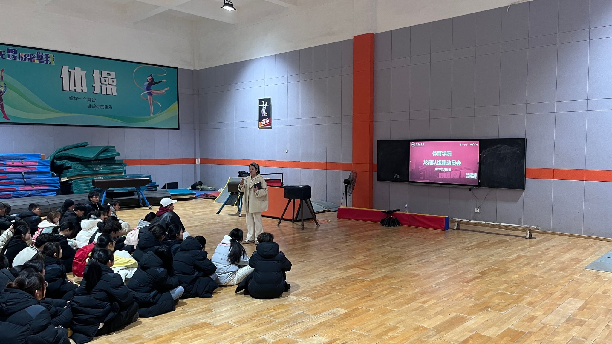 为弘扬中华传统文化,增强大学生团队协作精神,展现青春风采,2025年2月25日,于体育馆体操馆举办了一场备受瞩目的龙舟队选拔活动,此次选拔旨在为即将到来的龙舟赛赛事挑选出精英队员。