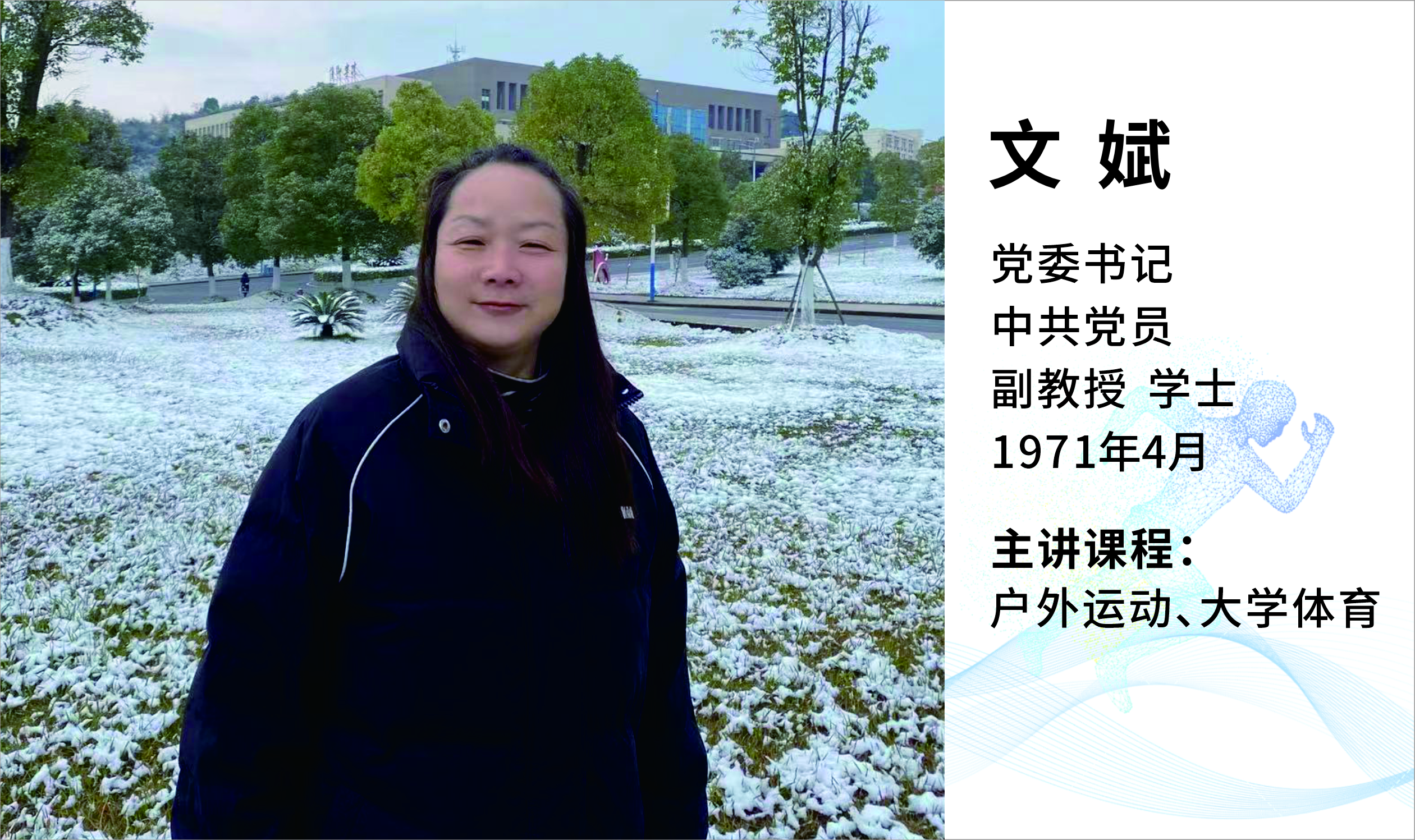 学院拥有一支高素质的师资队伍,现有教职员工40人,专职教师32人,其中,教授2人,副教授10人,博士4人,具有硕士学位教师21人,“双师双能型”教师20人,国家级社会体育指导员12人,国家级裁判员2人,中国武术六段2人,高级中医针灸师1人,健美操健将1人,各项目一级裁判员20余人,学院每年外聘体育专业领域优秀教师15人。教师承担各级科研项目多达50余项,公开发表学术论文300余篇,其中核心期刊50多篇,出版专著、教材十余部,在教学和科研领域均取得了显著成绩,充分展示了学院教师队伍的实践能力和创新精神。